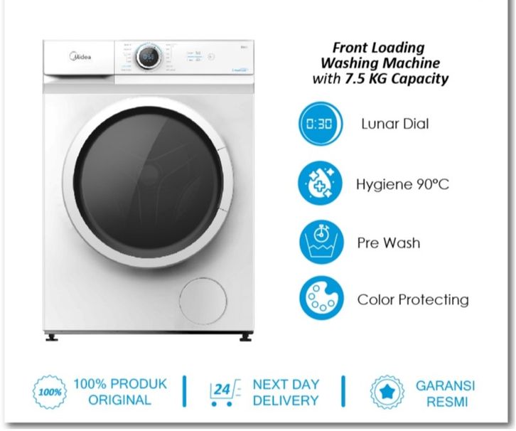 MESIN CUCI MIDEA KAPASITAS 7,5 KG MODEL MF100W75 BUKAAN DEPAN TERMURAH