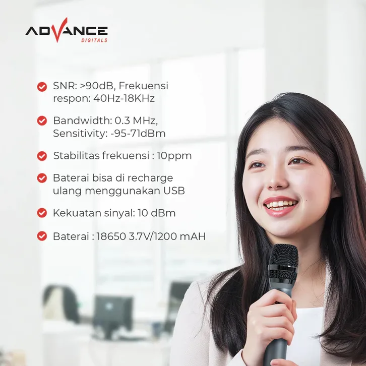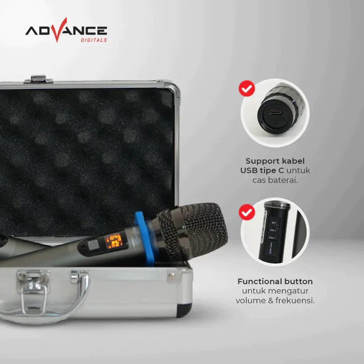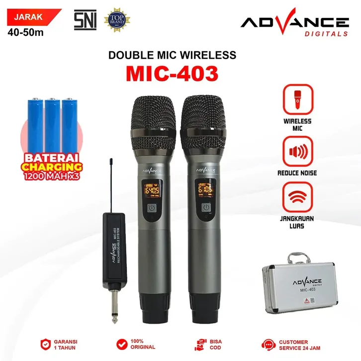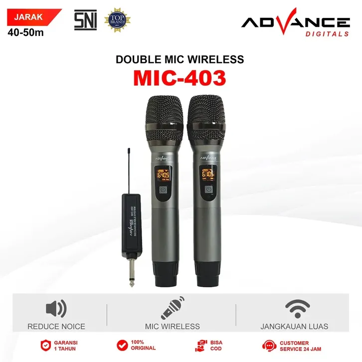 [Mall] ADVANCE MIC403 DOUBLE MIC BLUETOOTH KARAOKE WIRELESS MICROPHONE SUARA JERNIH BONUS BATERAI CAS 3 PCS