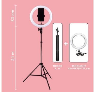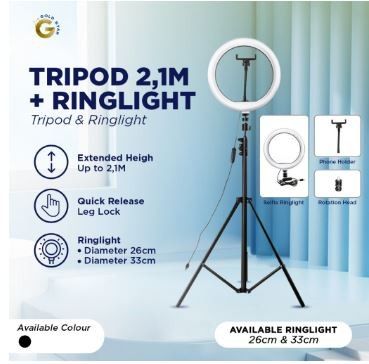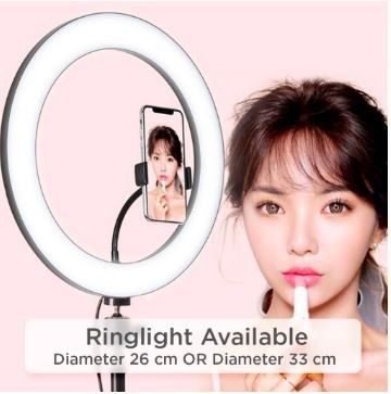 Paket Komplit Murah Ringlight 26CM / 33CM + TRI 2.1 Meter Make Up Vlog Lampu Ringlight - 26cm