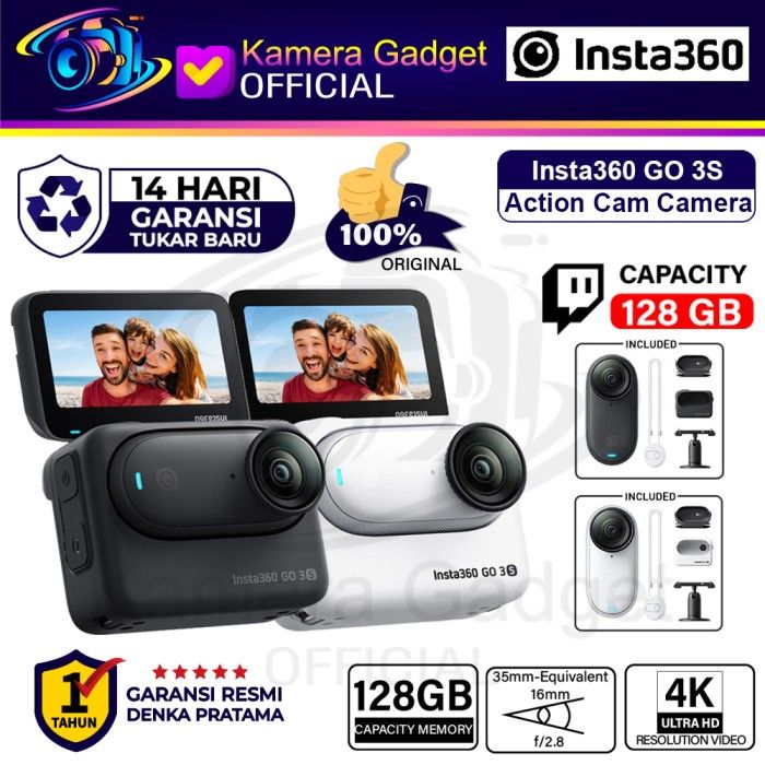 Insta360 GO 3S 128GB / GO 2 32GB - 64GB 4K Action Cam Insta 360 GO3S / GO2 Action Camera Original Resmi - GO3S 128GBWHI