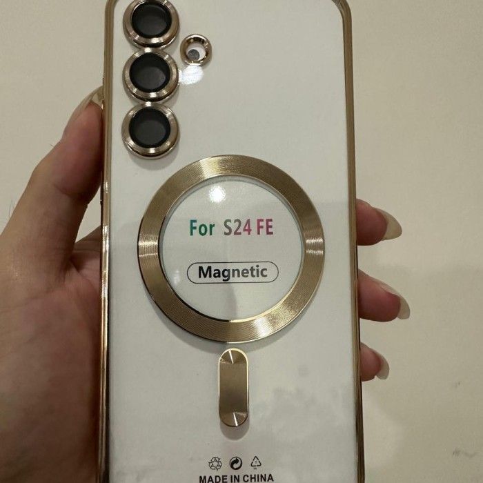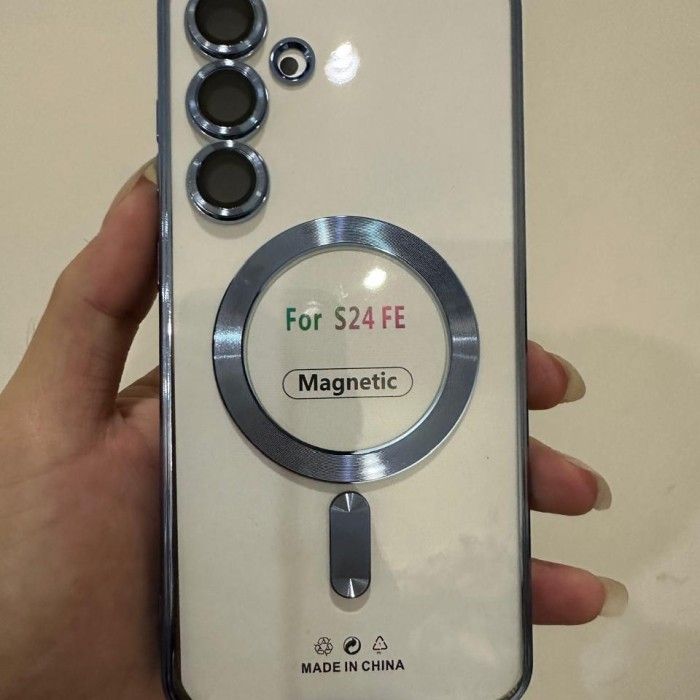 Case Samsung Case Samsung galaxy S24 FE 5G Soft Case MagSafe magnet wireless Clear transparan plating Casing - Silver