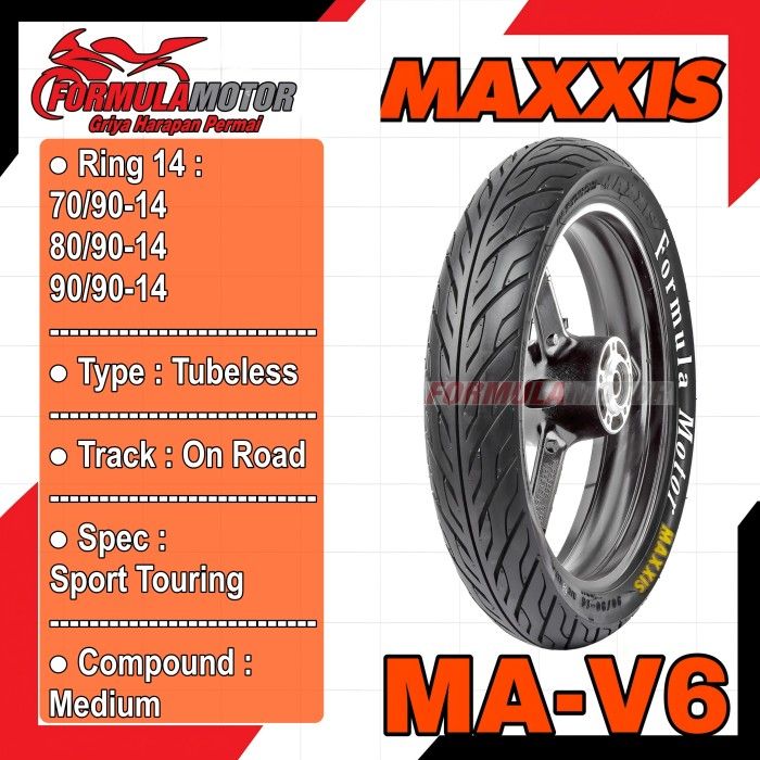 Ban Motor Maxxis MA-V6 Ring 14 Tubeless/Tubles (Pilih Ukuran) - 70/90-14, Tanpa Pentil GRATIS ONGKIR