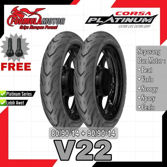 80/90-14 & 90/90-14 Ban Corsa Platinum V22 Sepasang Ban Motor Ring 14 - +P Karet GRATIS ONGKIR