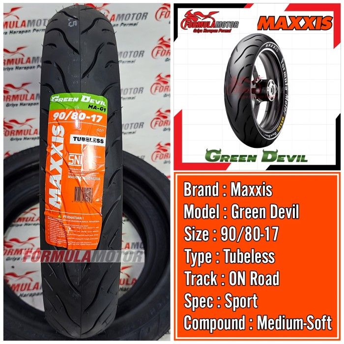 90/80-17 Ban Maxxis Green Devil MA-G1 - Ban Motor Ring 17 Tubeless - Tanpa Pentil GRATIS ONGKIR