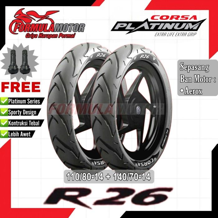 110/80-14 & 140/70-14 Corsa Platinum R26 Sepasang Ban AEROX-155 Tubles - +P Karet GRATIS ONGKIR