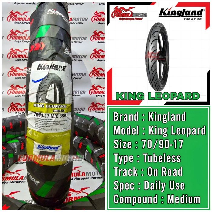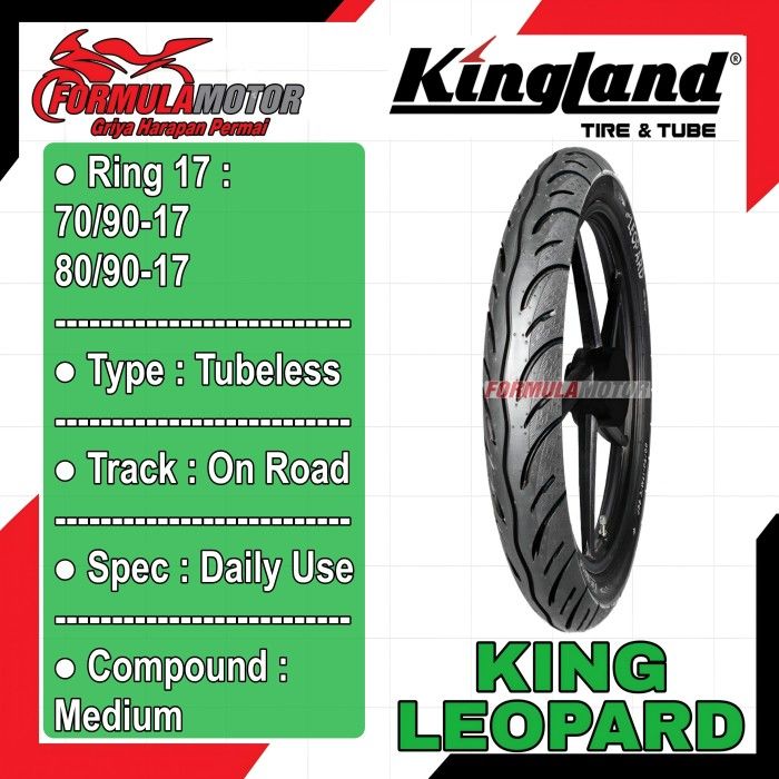 Ban Kingland Leopard Ring 17 Tubeless - Ban Motor Bebek Supra Karisma - 70/90-17, Tanpa Pentil GRATIS ONGKIR