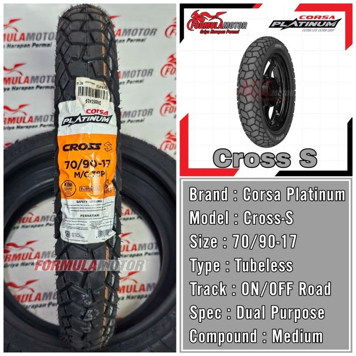 Ban Motor Corsa Platinum Cross S Ring 17 Dual Purpose (Pilih Ukuran) - 70/90-17, Tanpa Pentil GRATIS ONGKIR