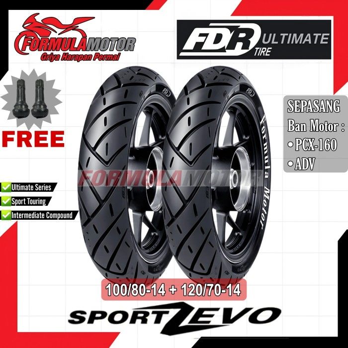 100/80-14 & 120/70-14 FDR Sport Zevo Ultimate - Sepasang Ban PCX-150 - Pentil Karet GRATIS ONGKIR