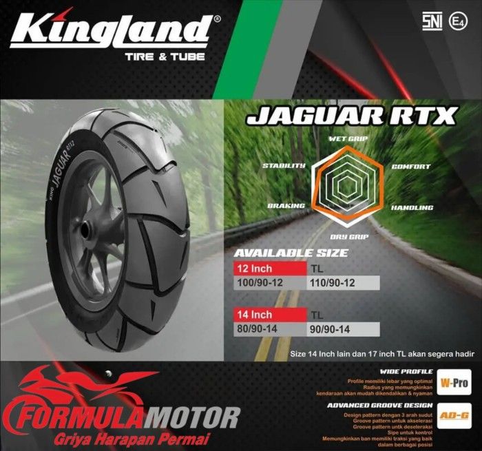 110/90-12 Ban Kingland Jaguar RTX-2 Ring 12 Tubeless Scoopy / Freego - Karet Bengkok GRATIS ONGKIR