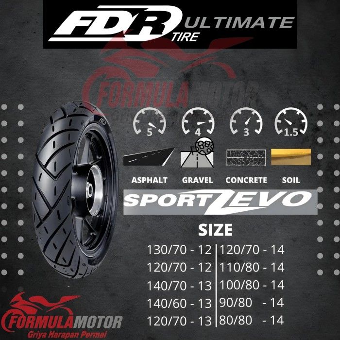 120/70-13 & 140/70-13 FDR Sport Zevo Ultimate - Ban Motor NMAX Ring 13 - Pentil Karet GRATIS ONGKIR