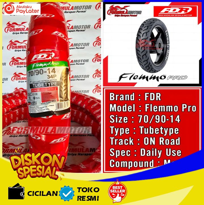 FDR Flemmo Pro Ring 14 Tubetype - Ban FDR Motor Matic Non Tubeless - 70/90-14 GRATIS ONGKIR