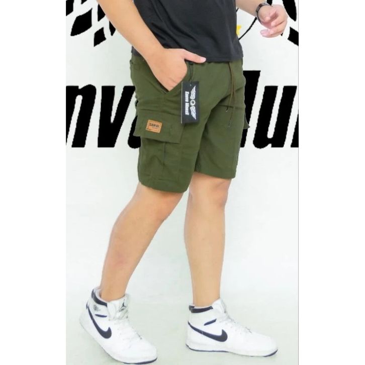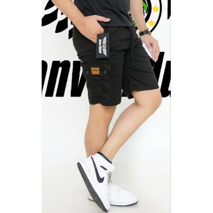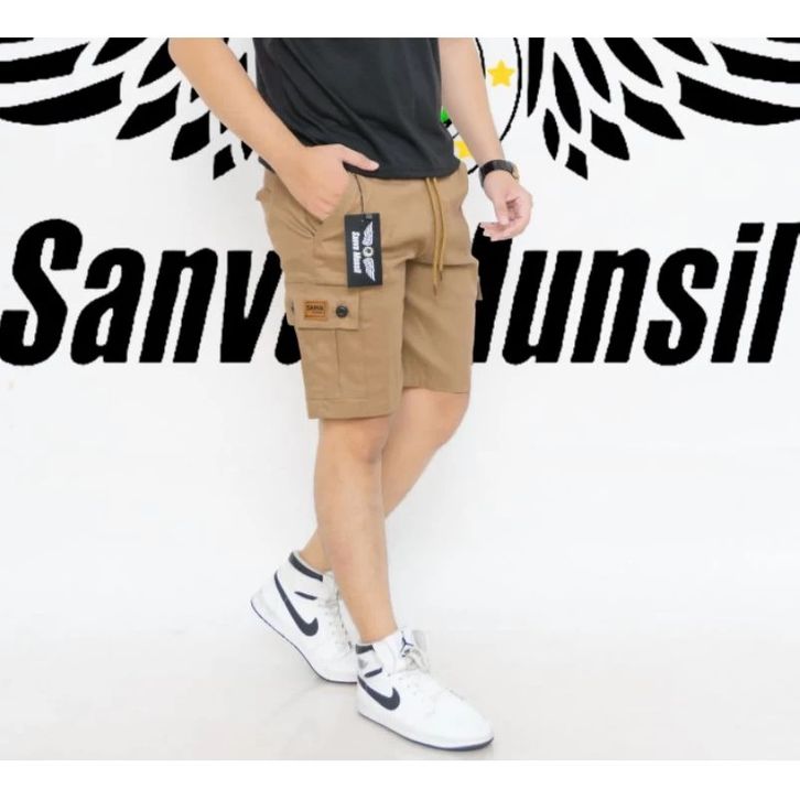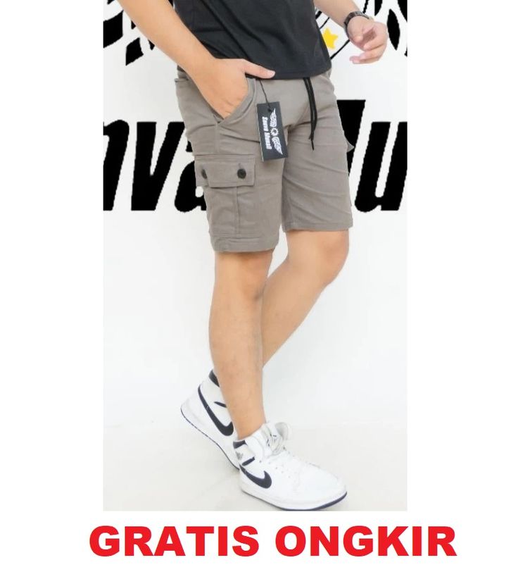 Celana Pendek Cargo Pria Boardshort Dewasa model terkini pinggang karet melingkar all size standar, bahan Combet