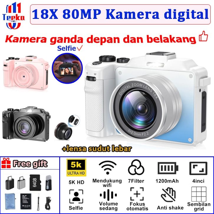 TEEKA 64GB 18X 75MP Kamera Digital 4K Vlogging Dengan Dukungan Selfie Koneksi WIFI