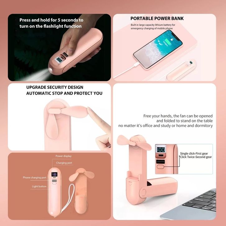 Jovitech Headset LED Kipas Powerbank 4 In 1 Wireless Earphone Mini Fan Flashlight Powerbank - T64