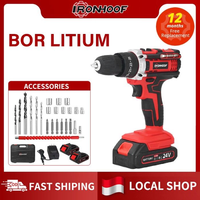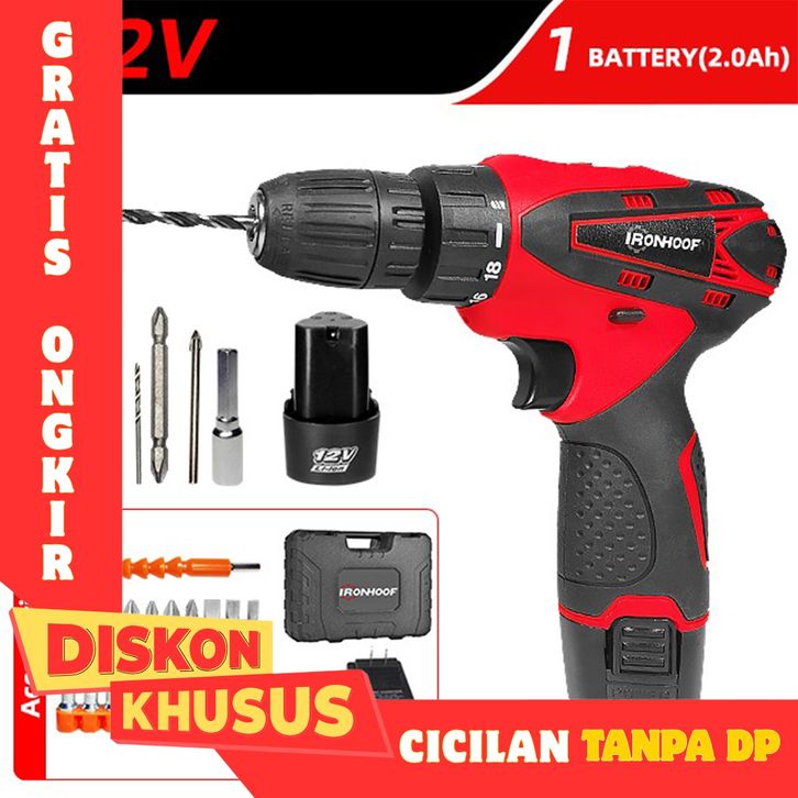 TERLARIS IRONHOOF MESIN BOR 3 IN 1 ELECTRIC DRILL 12V/24V CORDLESS DRILL - 12V 1 BATERAI