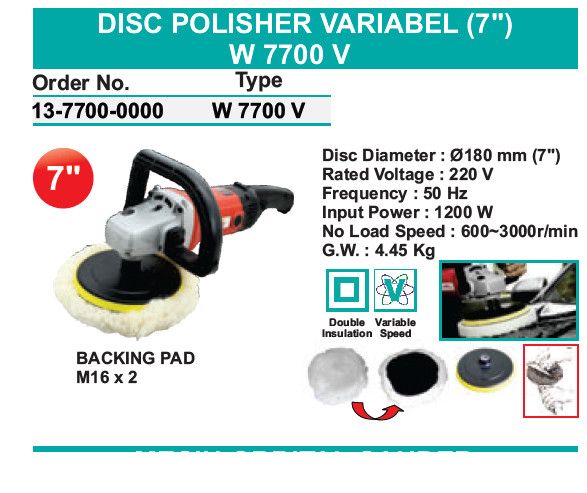 TERLARIS DISC POLISHER VARIABLE 7" INCH MESIN PEMOLES ALAT POLES WIPRO W 7700 V