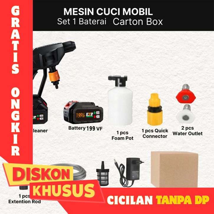TERLARIS MESIN CUCI MOBIL 199V ALAT STEAM CUCI MOTOR MOBIL ALAT SEMPROT ALAT - - 199V + BATERAI