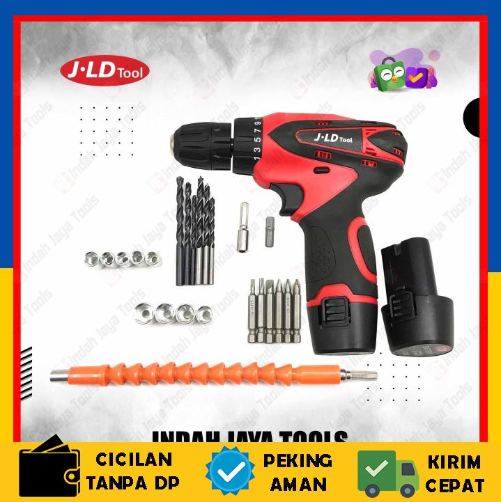 TERLARIS J.LD CORDLESS DRILL SET 12V 29 PCS MESIN BOR BATERAI CHARGER BESI KAYU