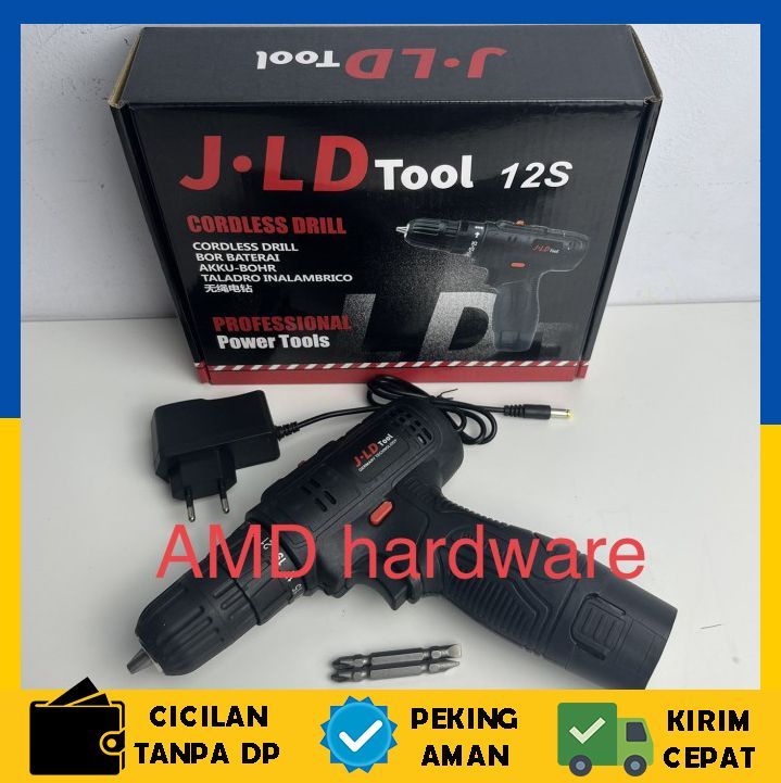 TERLARIS MESIN BOR CORDLESS DRILL BATERAI 12V JLD 12S ORIGINAL J 12 S VOLT - JLD 12S HITAM