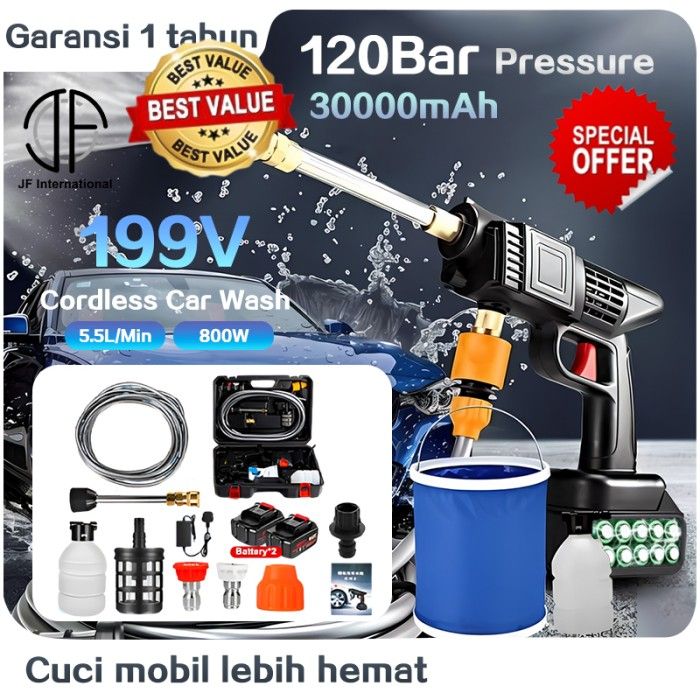 TERLARIS ALAT STEAM CUCI MOTOR & MOBIL JET CLEANER BATERAI / CUCI MOBIL TANPA - 197V+1BATTERYVD