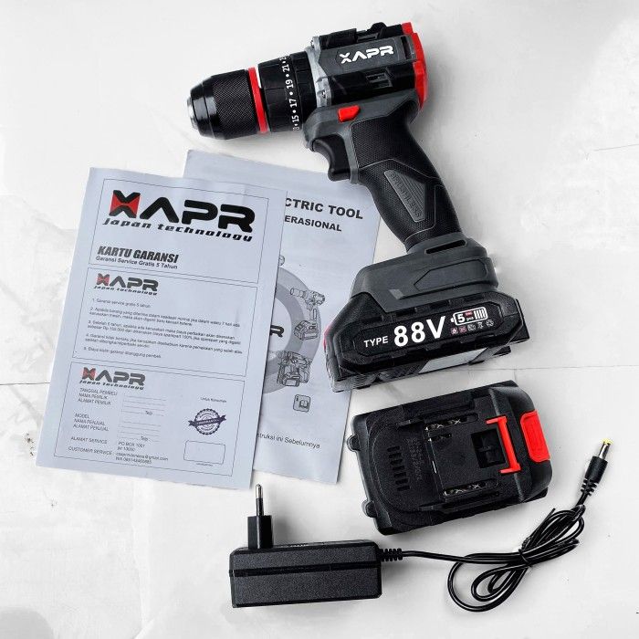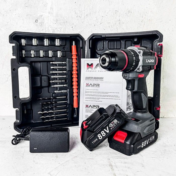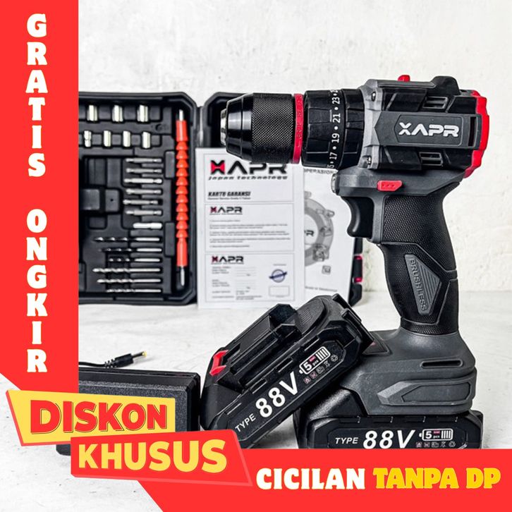 TERLARIS BOR CORDLESS APR AP34+ BRUSHLESS IMPACT DRILL 13MM KEYLESS MESIN BOR 2BATERAI FULLSET
