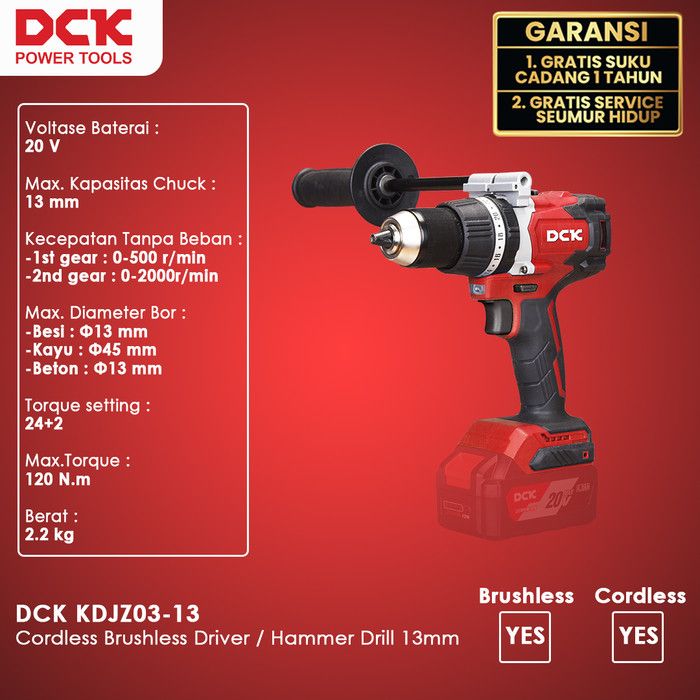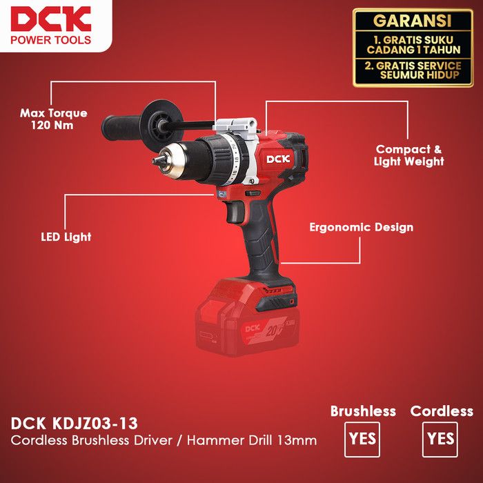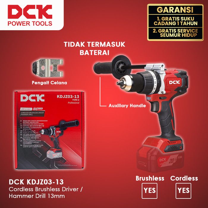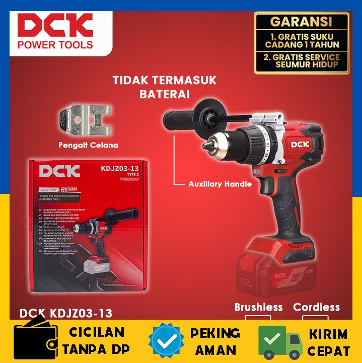 TERLARIS DCK KDJZ03-13 CORDLESS BRUSHLESS DRIVER / HAMMER DRILL / MESIN BOR TEMBOK BATTERY 13MM - UNIT ONLY