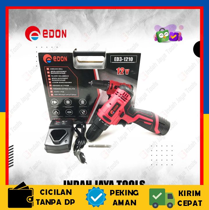 TERLARIS MESIN BOR 10 MM CORDLESS / CHARGER | RECHARGEABLE 12V EDON