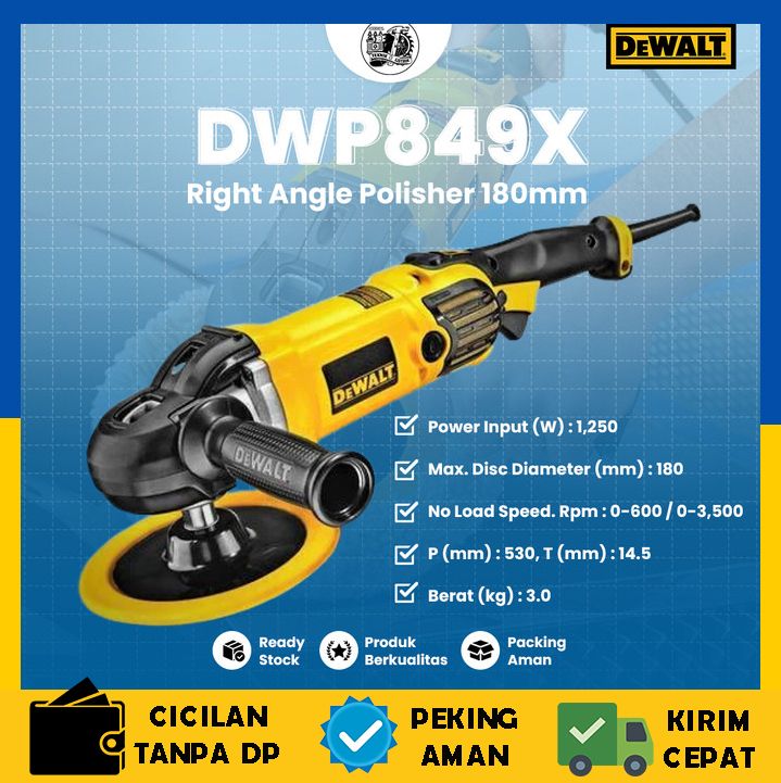 TERLARIS DEWALT POLISHER DWP849X MESIN ALAT POLES MOBIL RIGHT ANGLE 180MM