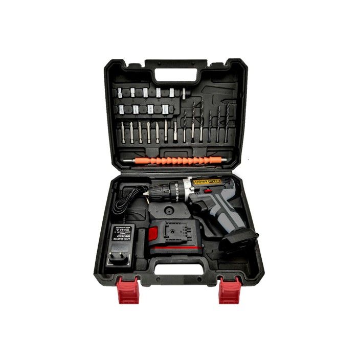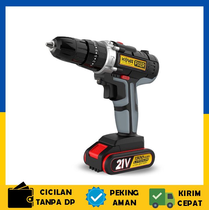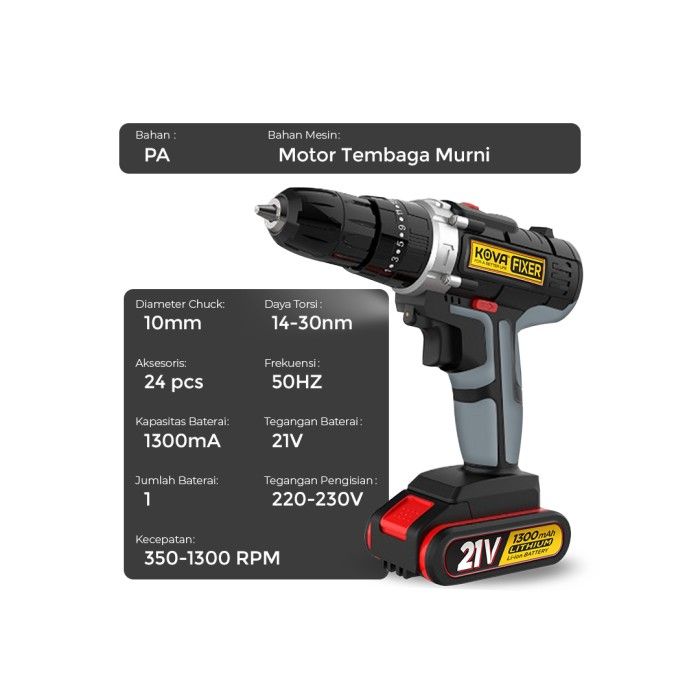 TERLARIS KOVA FIXER CORDLESS DRILL 10MM SET MESIN BOR TANGAN BATERAI TEMBOK 21V - GREY BLACK