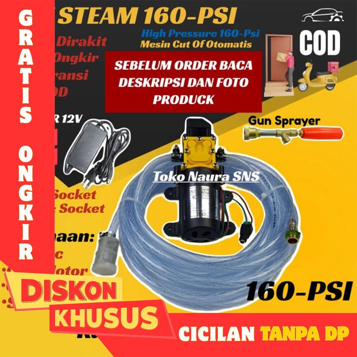 TERLARIS ALAT CUCI STEAM MOTOR MOBIL AC 12V 160 PSI / POMPA DC 12V 160 PSI