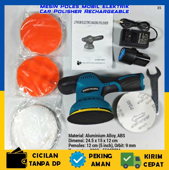 TERLARIS CAR POLISHER WAXING MACHINE MESIN ALAT POLES BODY KACA MOBIL PAD WOL - X5 POL BATT 12V