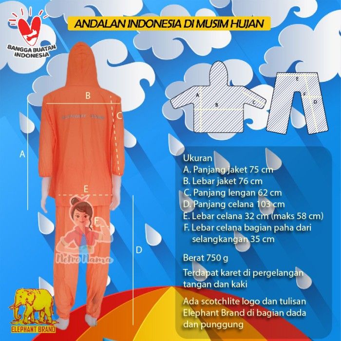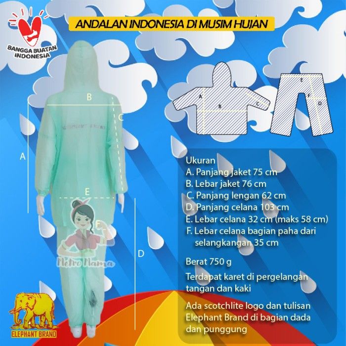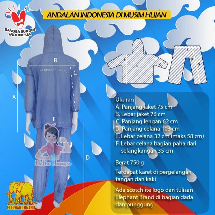Jas Hujan Setelan Jaket Celana Gajah Midi Elephant Brand