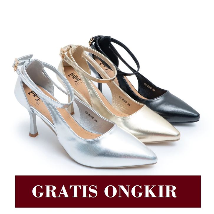 ELLORA EG-8200 Sepatu Heels Wanita 8cm Ankle Strap Import Glossy