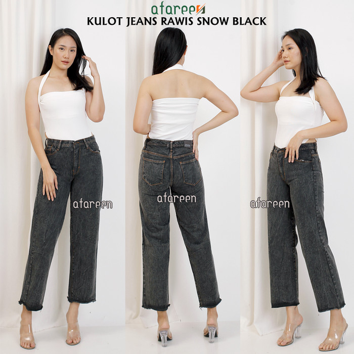 [PROMO] HIGHWAIST CELANA JEANS WANITA KULOT RAWIS BOYFRIEND KEKINIAN PREMIUM - SNOW BLACK, 27