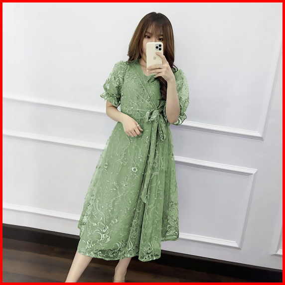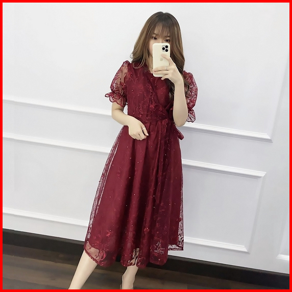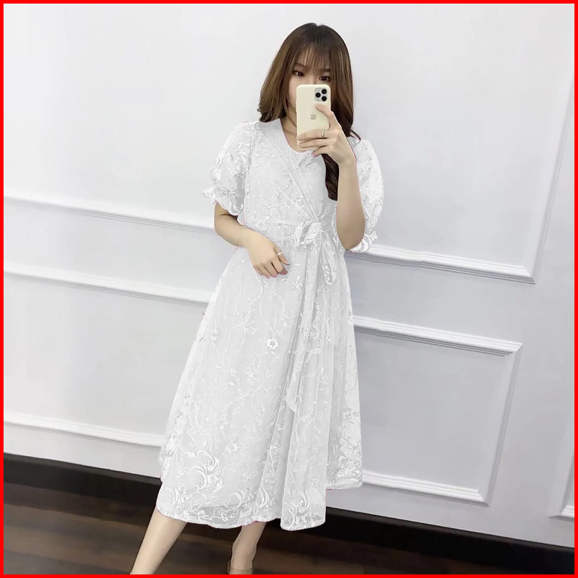 Midi Dress Natal Livina Ready 3ukuran M L Xl Rekomendasi Outfit Baju Pesta Kondangan Wanita Gaya Korea Brokat Tile Impor
