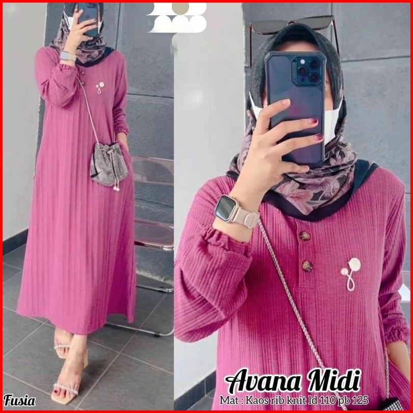 Avana Midi Dress Wanita Knit Hornet Premium Terbaru