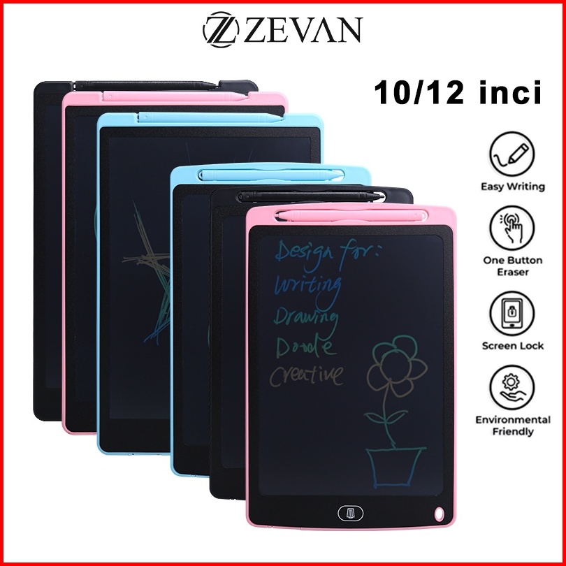 Zevan Lcd Drawing Writing Tablet Warna-warni Papan Gambar Ukuran 8 5-10-12 Inch Display Board