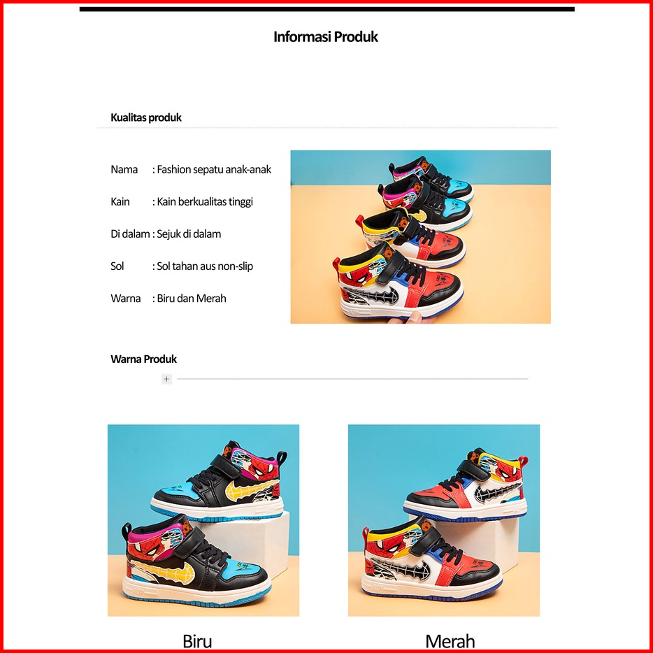 Mosbo Sepatu Spiderman Anak Sepatu Boot Anak Cowok Import Cewek Sepatu Sneaker Boots Kulit Spiderman Sneakers Sekolah An