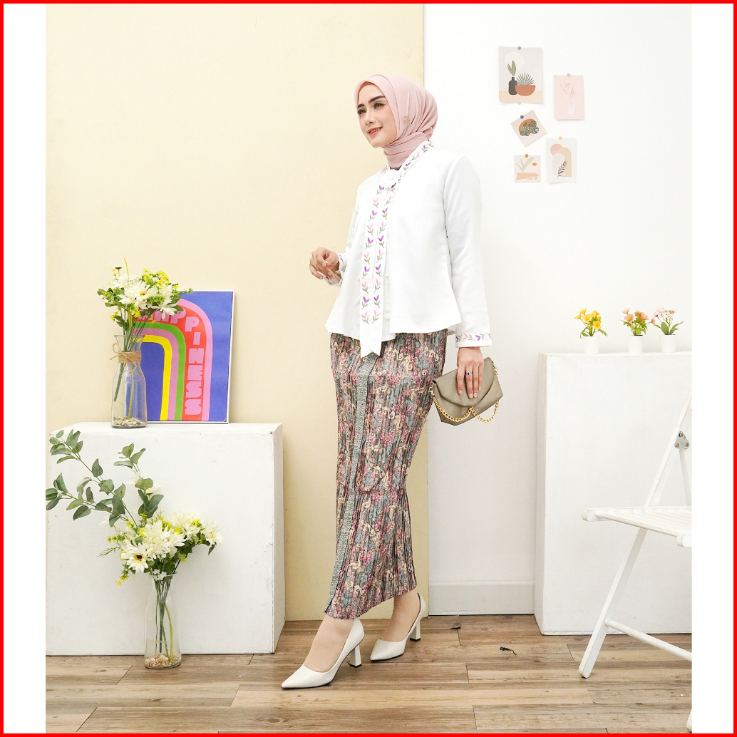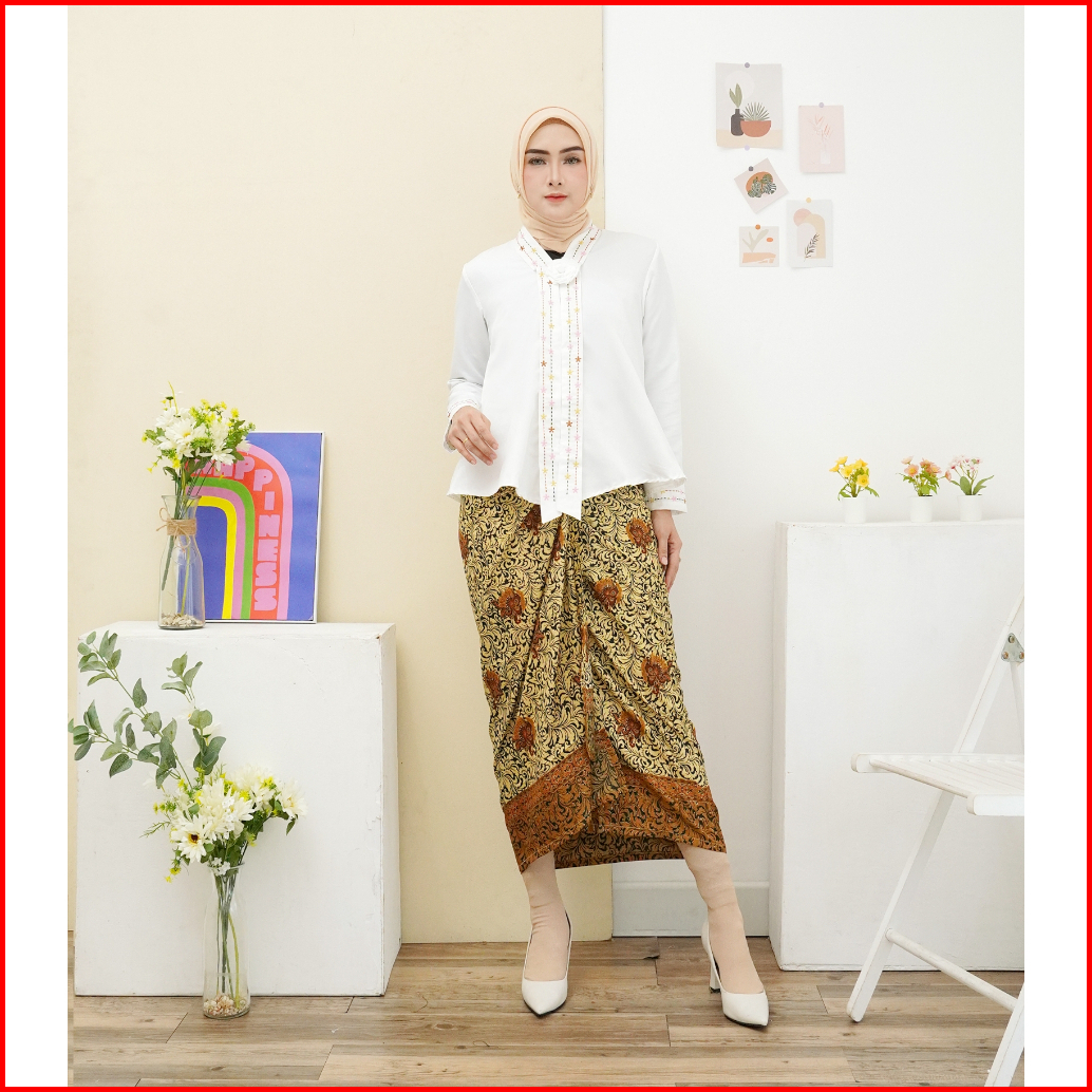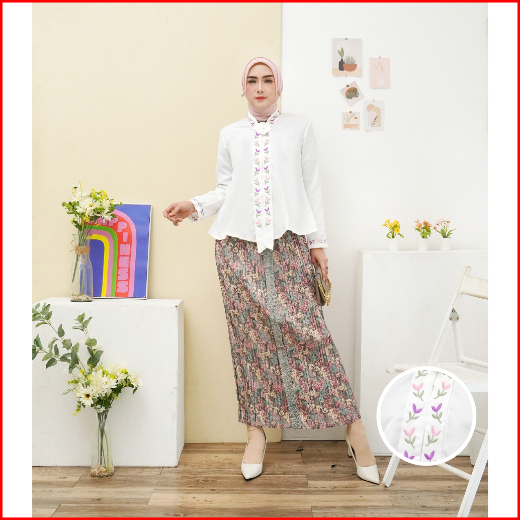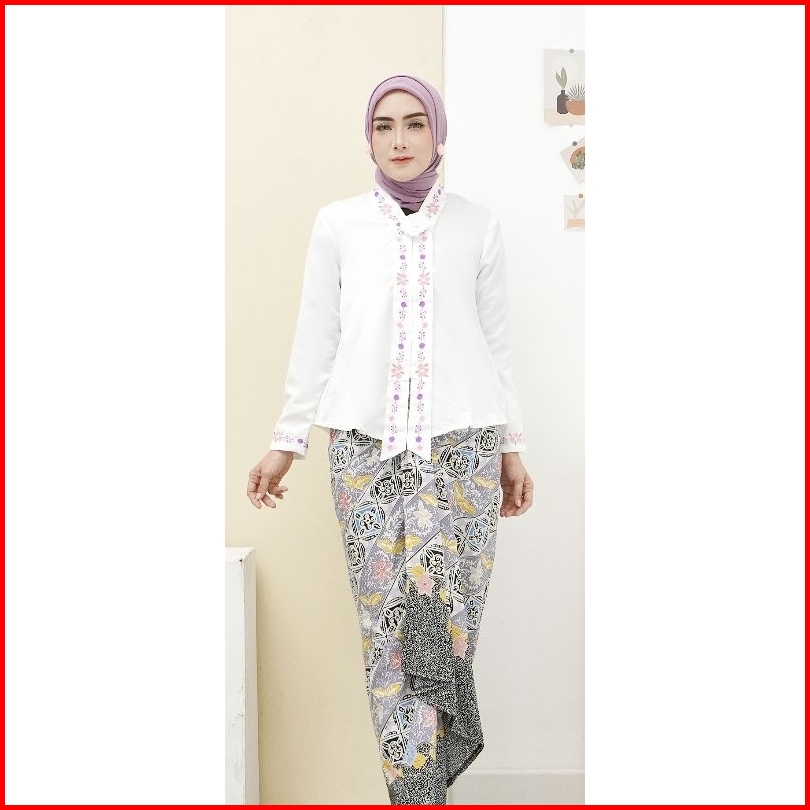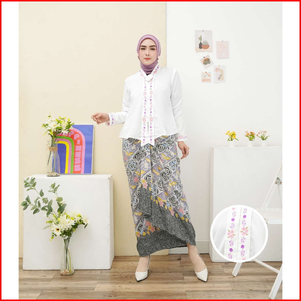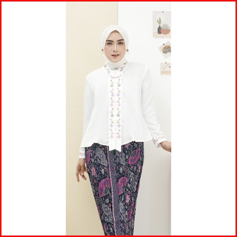 Atasan Kebaya Floy Bordir Putih Lengan Panjang Sampai Jumbo Keroncongbusana