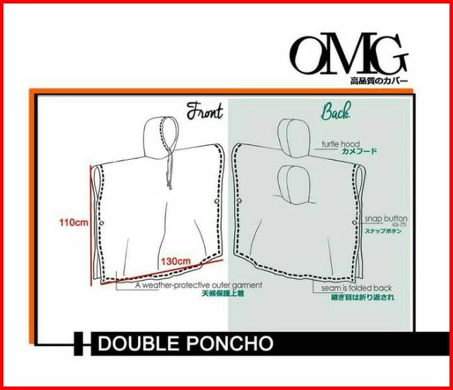 Jas Hujan Double Poncho Omg Japan 2 Kepala 2in1 Ponco