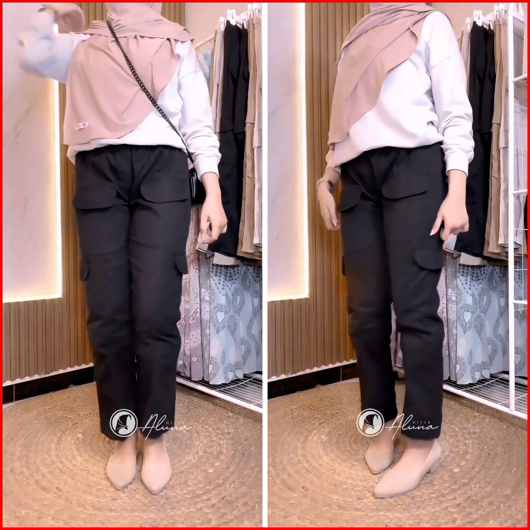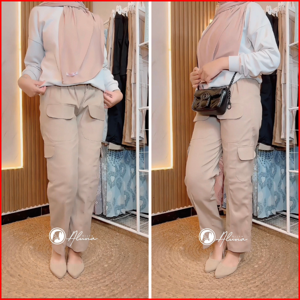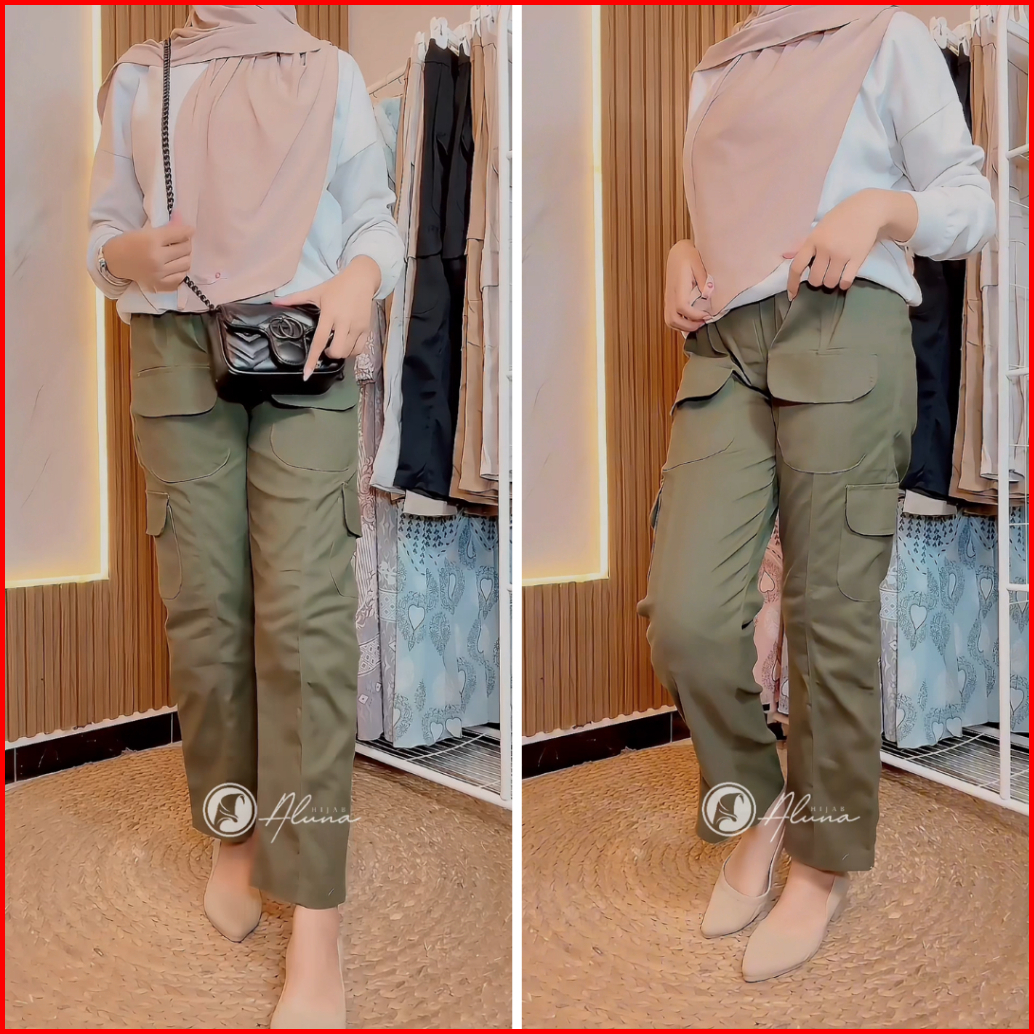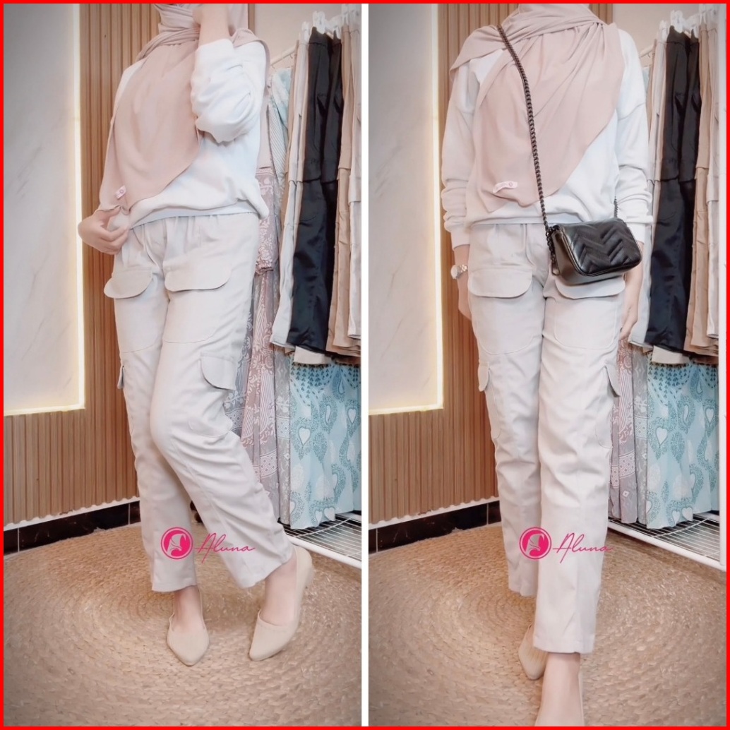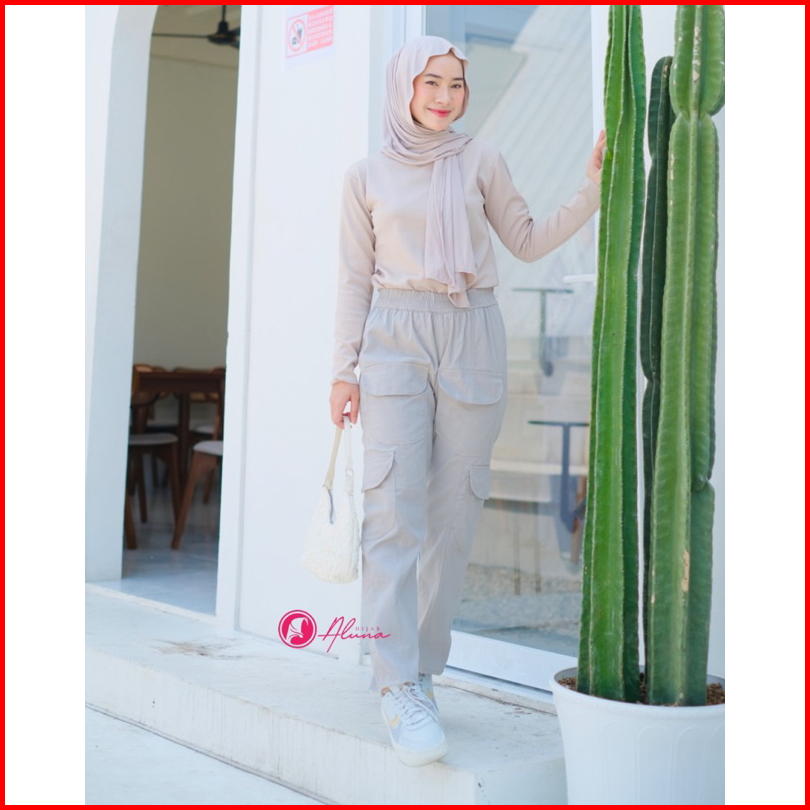 Neera Cargo Pants By Hijab Aluna Celana Cargo Wanita Bahan Twill Stretch Celana Panjang Wanita Melar
