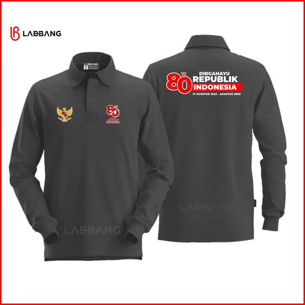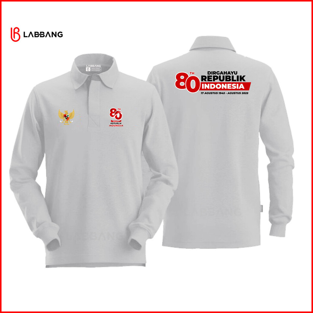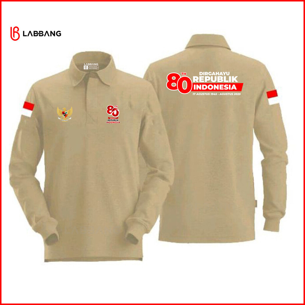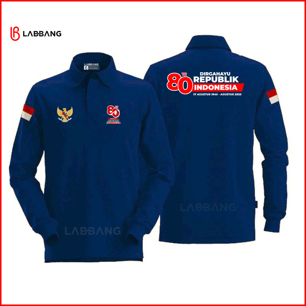 Labbang Polo Shirt Lengan Panjang Hut Ri Ke 80 Kemerdekaan Indonesia 17 Agustus 2025 Unisex Pria Wanita
