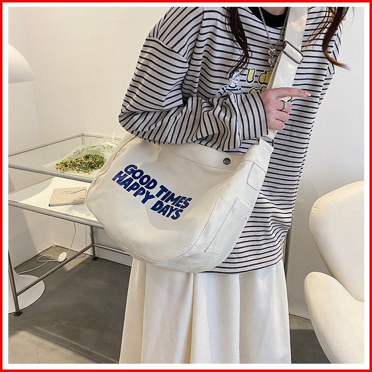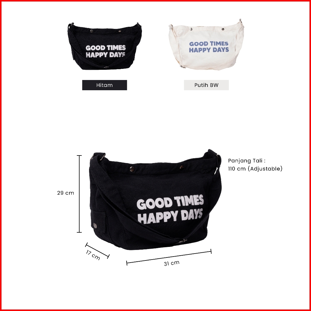 Happy Days Bag Slingbag Tas Selempang Canvas Wanita Casual Trendy Slingbag Cewek Ootd Fashion Wanita Kuliah Korean Baran