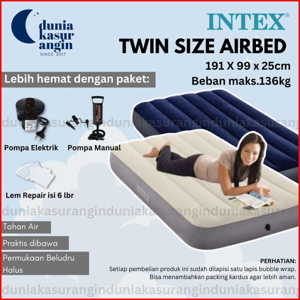 Duniakasurangin - Kasur Angin Intex Twin Size Durabeam 64101 64757 Kasur Camping 191cm X 99cm X 25cm
