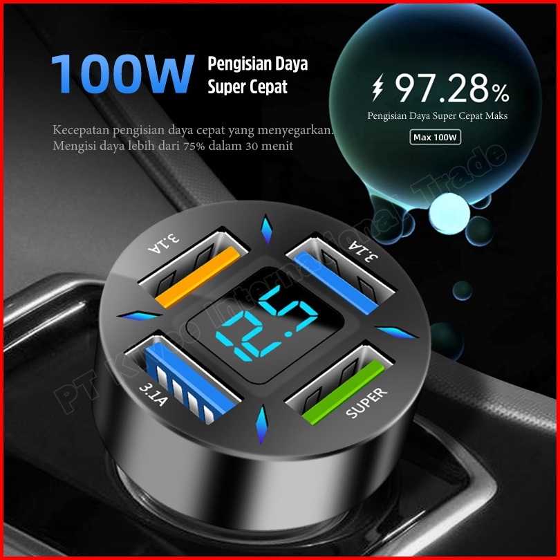 Hot Kivee Car Charger Mobil Usb Fast Charging 100w 4-in-1 For Iphone Xiaomi Samsung