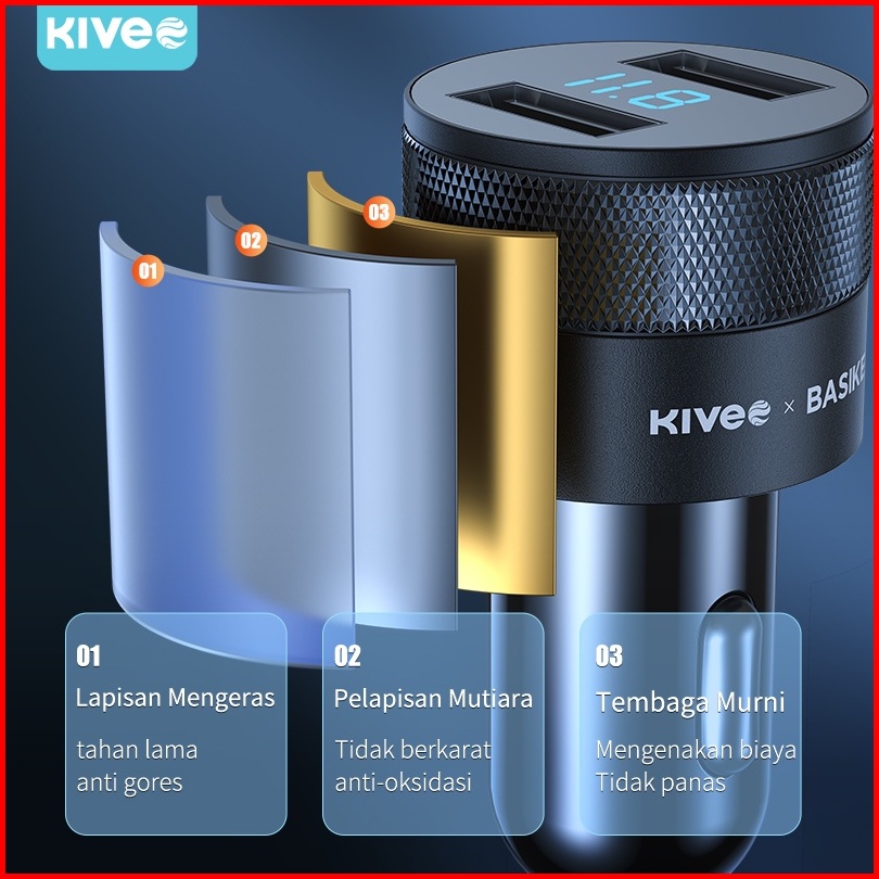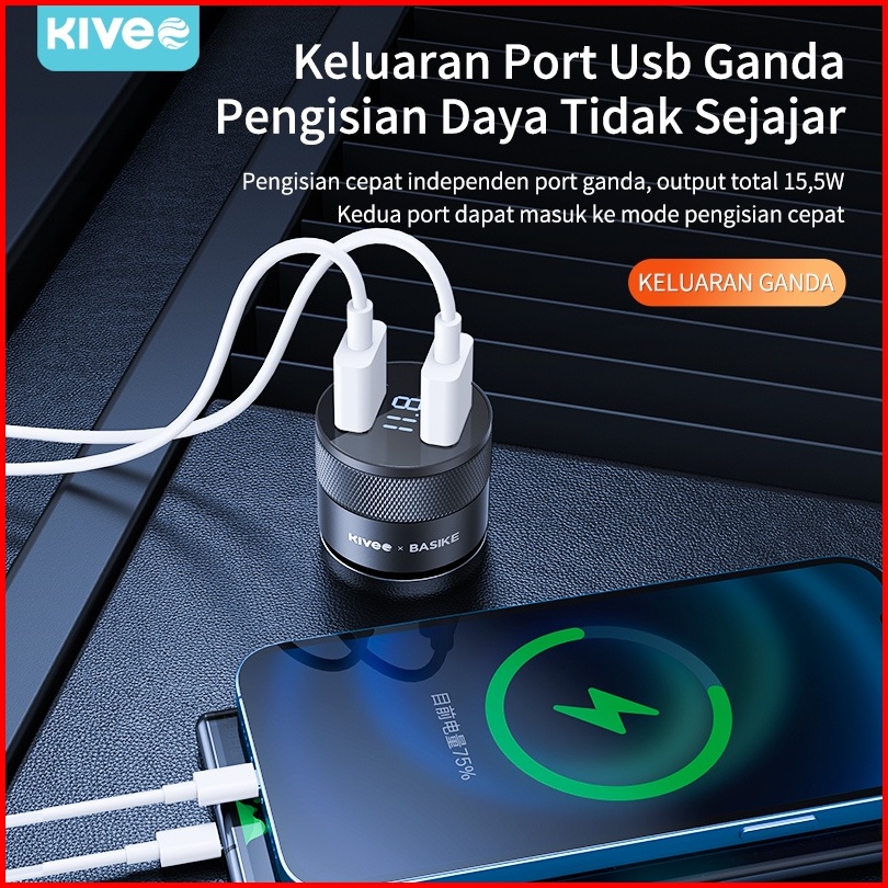 Kivee Charger Mobil Fast Charging Car Charger Dual Usb For Samsung Iphone Xiaomi