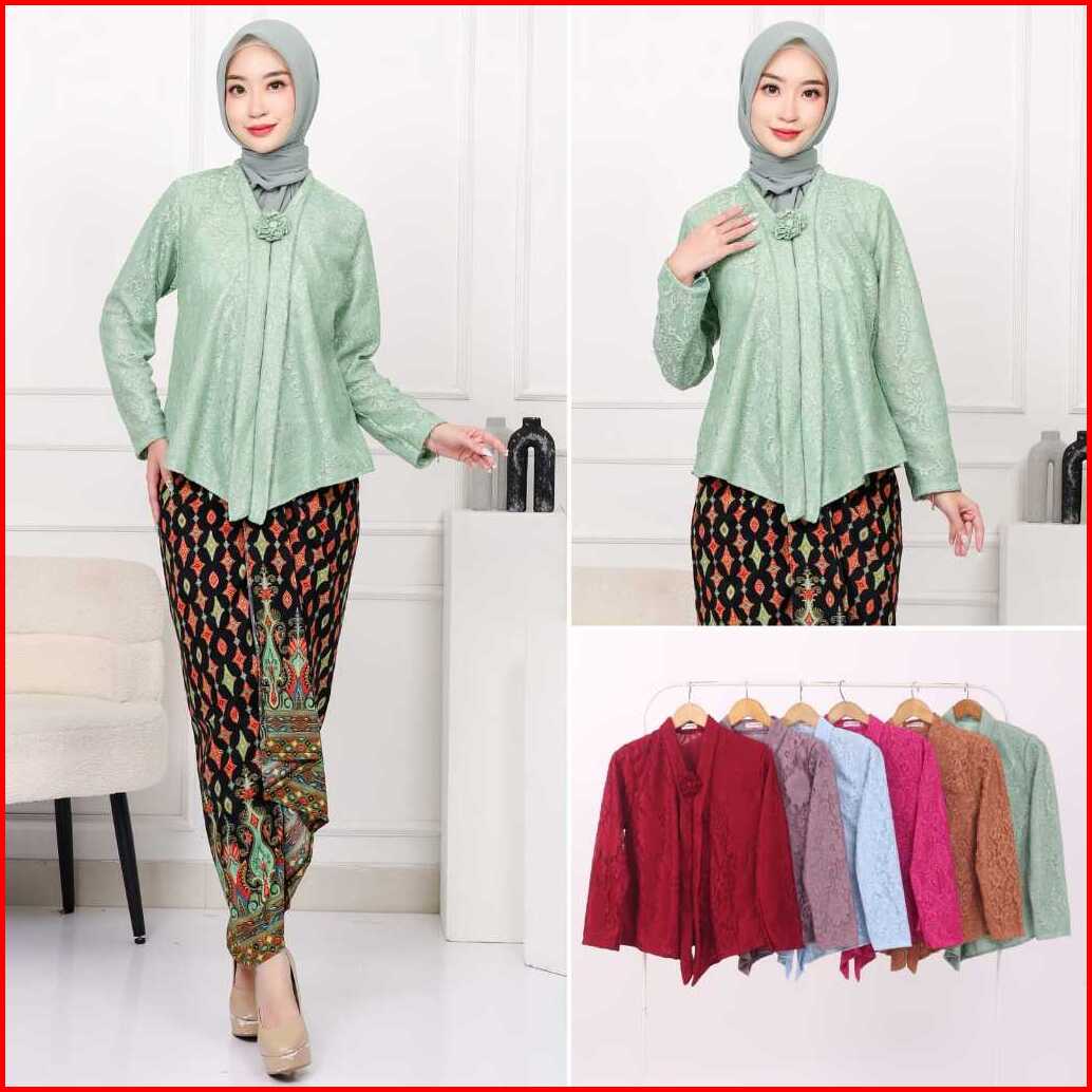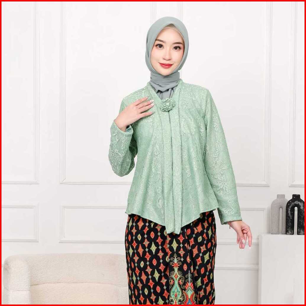 Brp92 110 Kebaya Floy Brokat Panjang Glitter Full Furing Adem Busui Std - Jumbo Keroncongbusana