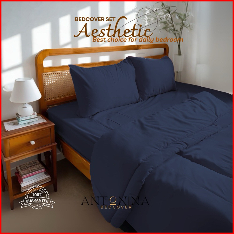 Bedcover Set Polos Katun Lokal Aesthetic Sprei Hitam Abu Muda Selimut Tebal Lembut Premium Elegan