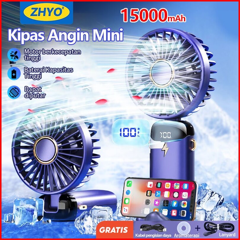 Zhyo New Kipas Angin Mini Portable Lipat Usb 15000 Mah 5- Tingkat Kecepatan Angin Yang Dapat Disesuaikan Tampilan Led De