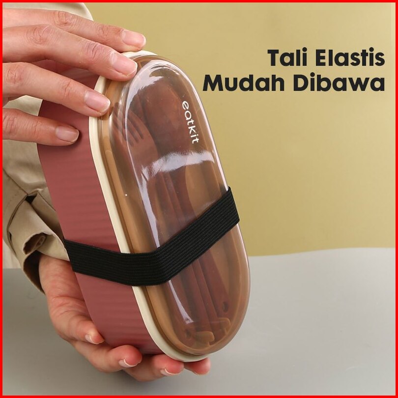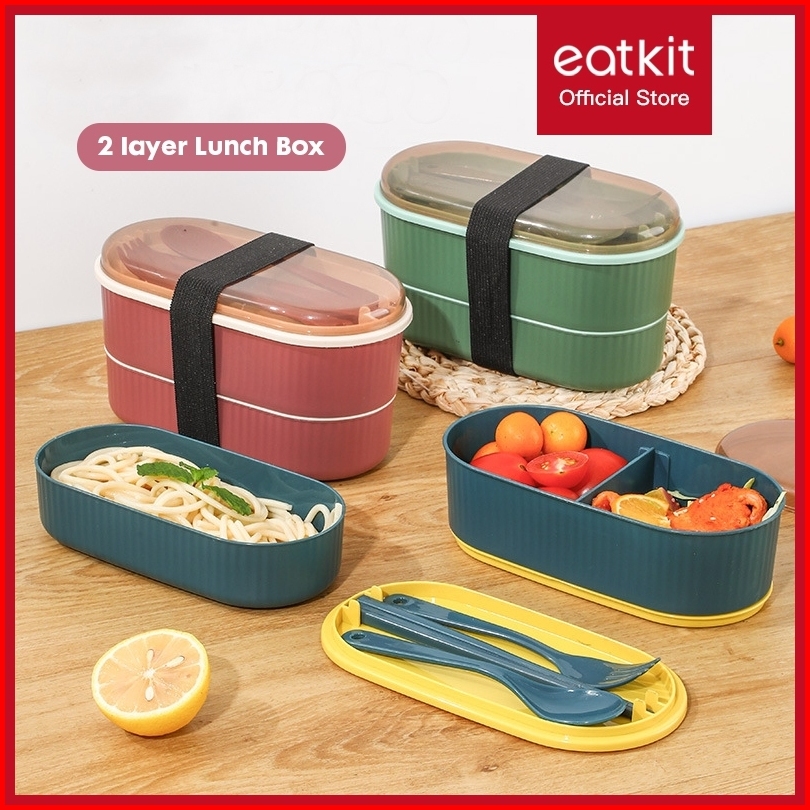 Eatkit Kotak Makan Siang Transparan 900ml Desain Dua Lapis Lunch Box Pemanas Microwave